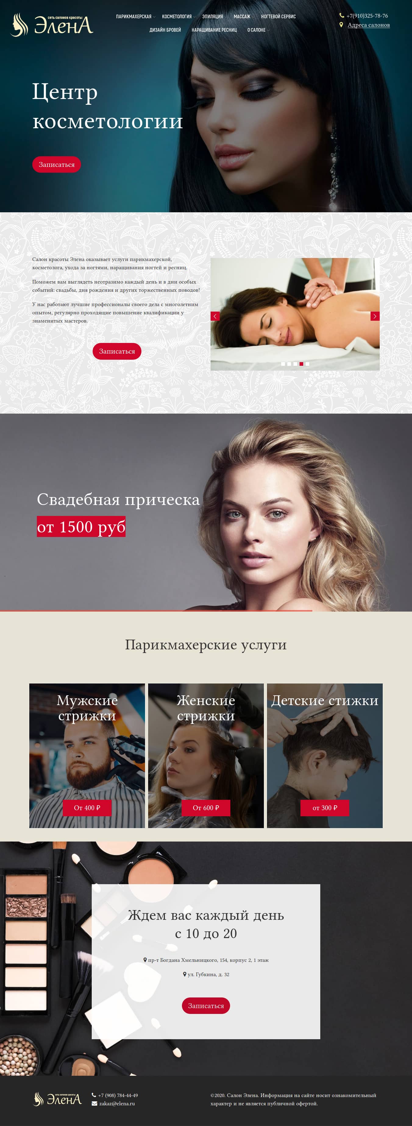 Сайт салона красоты оформлен в узнаваемой стилистике глянцевых журналов - это нравится посетительницам.
